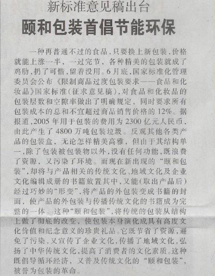 文章中的最后一句话:“颐和包装” 被誉为包装的革命。