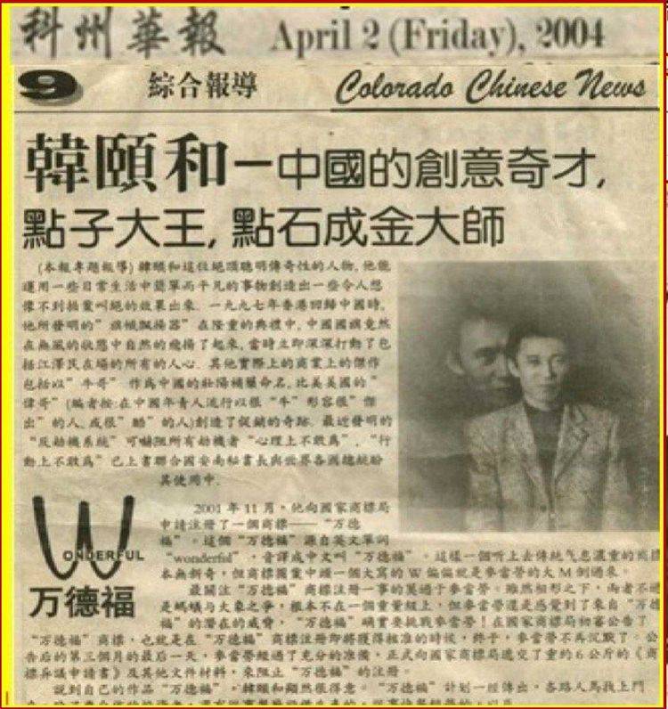 美国50 个州的中文和英文媒体进行了大量报道:韩颐和——中国的创意奇才、点子大王、点石成金大师。